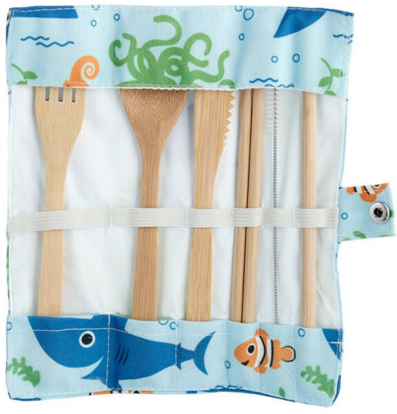 title Evőeszköz szett hordozható vászon tartóban, 6 db-os - Tengeri Állatok, 100% Bambusz
